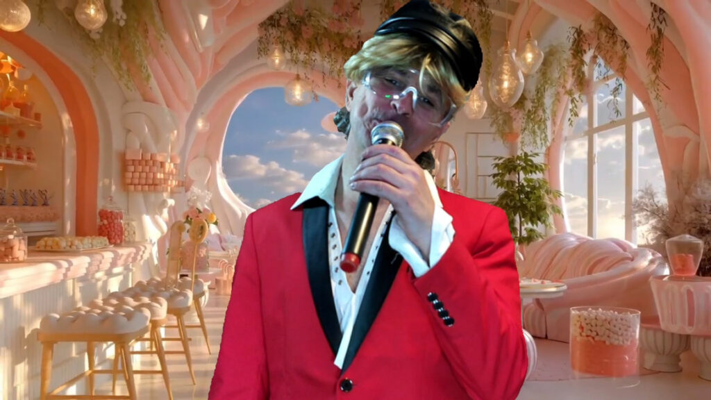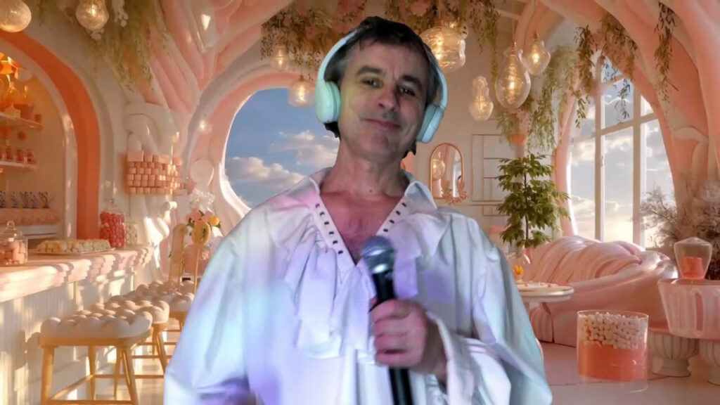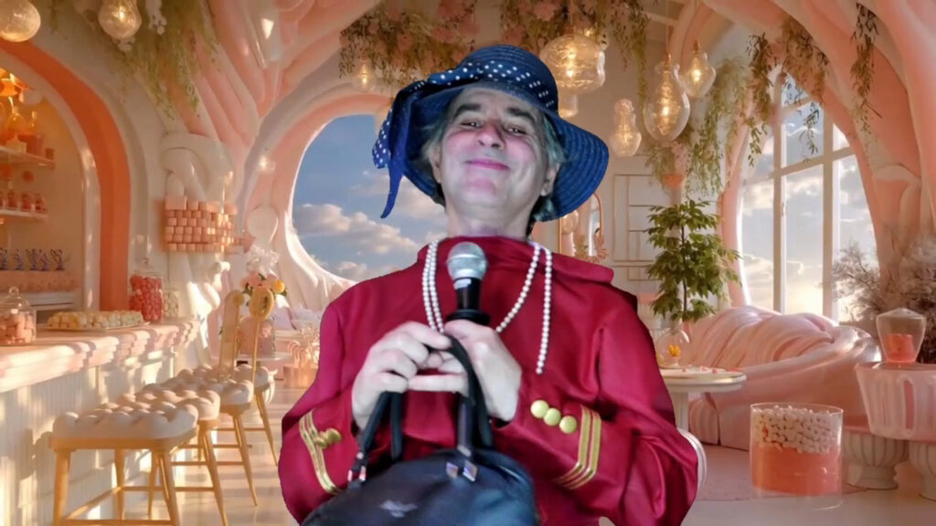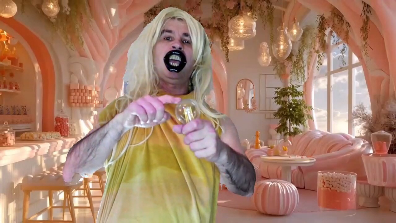 PLONGE DANS UN DECOR DE THEATRE, DEPUIS TOUJOURS LES GAYS LURON ONT LA JOIE DE VIVRE, POUR AMUSER LA GALERIE, POUR AUSSI VOUS TRACER CETTE MATRICE, QUI EST JUSTE QU’UN CARNAVAL, UN SHOW T’ATTEND, A MOURIR DE RIRE, REALISE A DOMICILE, IL VA Y AVOIR COMME PAR MAGIE UN EFFET DE SOLEIL SUR L’ECRAN, QUI VA APPARAITRE, PENDANT QUE JE JOUE L’ACTEUR, LORS DES PAROLES REVELATEUR, POUR VOUS MONTRER QUE JE SUIS BIEN LE MESSIE, ENCORE UN MESSAGE DU CIEL, QUE J’AI DECOUVERT LORS DU MONTAGE DE CES SEQUENCES CINEMATOGRAPHIQUES.